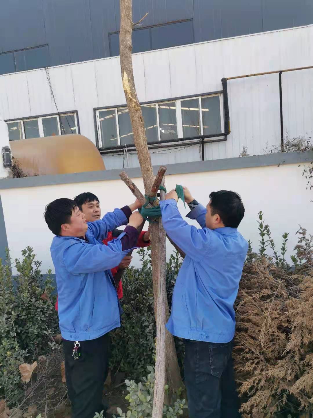 2月20日下午,公司組織全體行管人員,與車間負責人30余人參加“植樹造林,綠化廠區(qū)”主題活動。在廠區(qū)北墻外綠化帶,種植國槐36棵。大家積極踴躍參加植樹義務(wù)勞動,不怕苦,不叫累,相互協(xié)作,相互配合,有的挖坑,有的抬樹、有的種樹、有的澆水,通過兩個小時的勞動,圓滿完成了植樹任務(wù)。